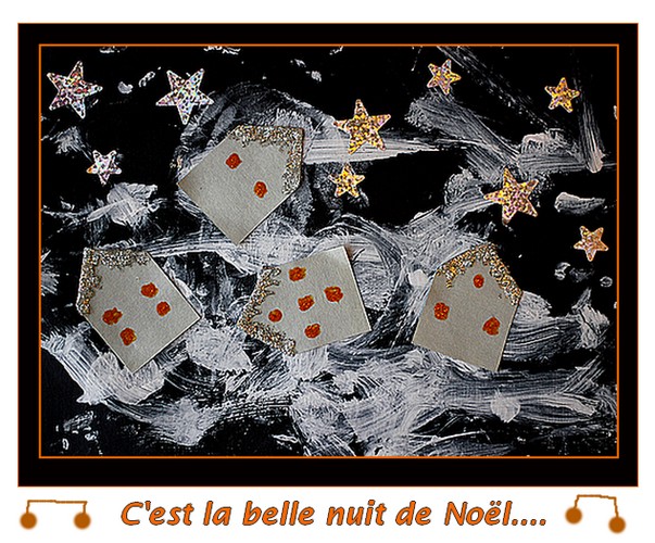 J'ai ajouté la neige par ordinateur mais possibilité de faire sur un papier fond neige ici...